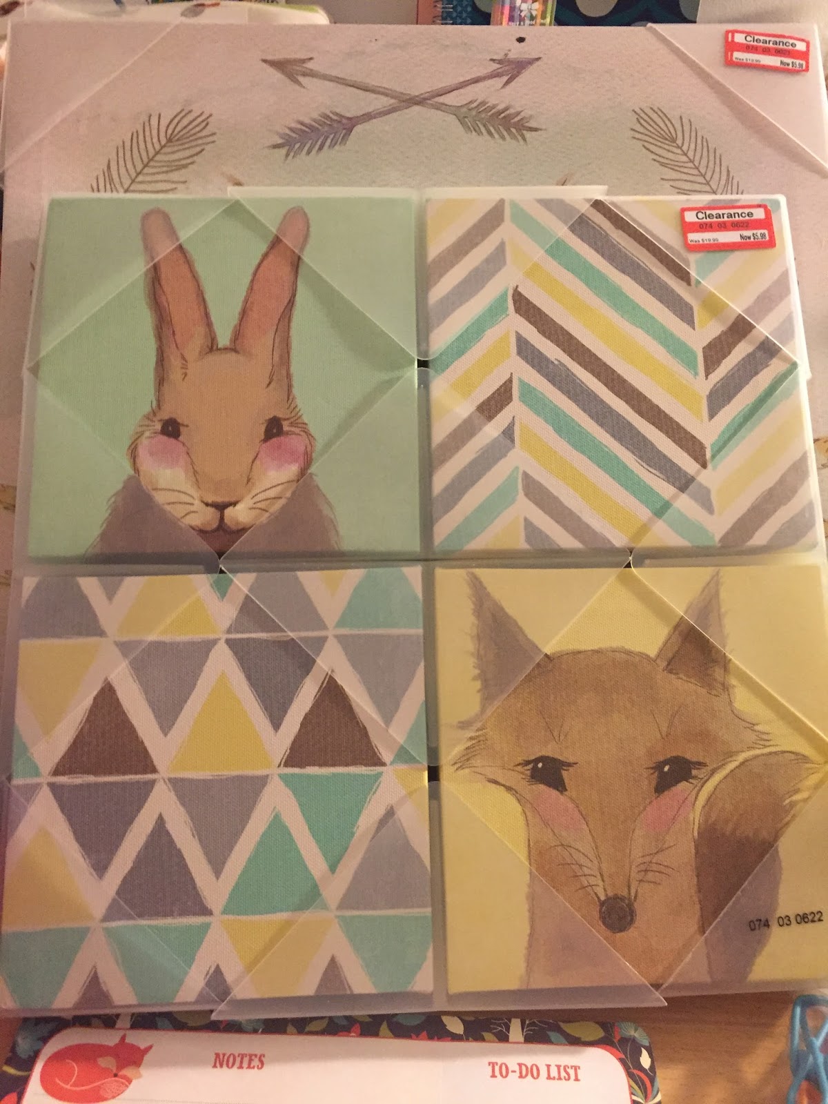I am still decorating my office and I found some fox canvas art. My office has been mostly the mint color in the art but I want to add some yellows.
